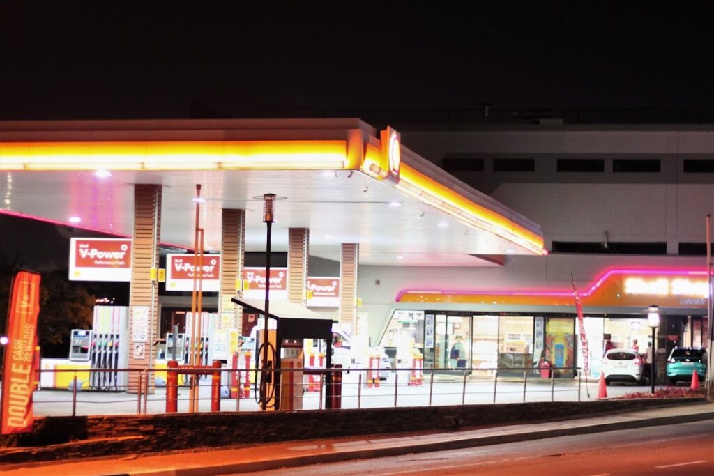- Forecourt shop stocked with snacks, beverages, and travel essentials